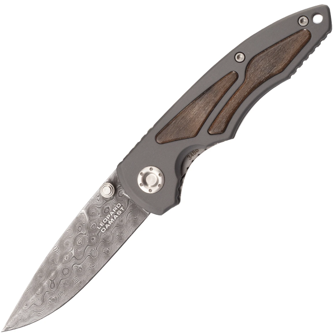 Böker Leopard-Damaskus I – Damaskus Leopard wird aus dem deutschen Kampfpanzer Leopard I geschmiedet. Dieser Spezialstahl ist nicht auf dem Markt erhältlich, da er nur für militärische Zwecke verwendet wurde. Es erreicht eine Härte von bis zu 61 – 63 HRC. Das Griffmaterial besteht aus 6061-T6 Aluminium. Das Messer wird mit einem Zertifikat und in einer Geschenkbox geliefert.