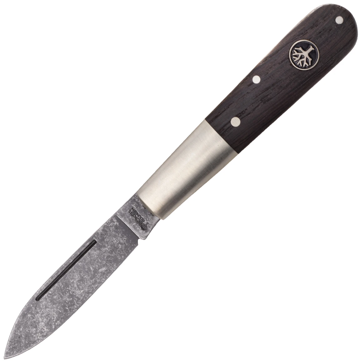 Das Barlow Oak Tree ist ein Taschenmesser von Böker mit einer glatten Klinge. Die Klinge ist aus C75-Stahl gefertigt, der beständig und leicht zu schärfen ist. Das Messer wird mit Hilfe eines Nagelclips geöffnet und hat keine mechanische Sicherung. Der Griff ist aus Eichenholz und Silbernickel gefertigt. Das Messer ist klein, so dass es in jede Tasche passt, ist aber groß genug, um alltägliche Schneidaufgaben zu bewältigen.