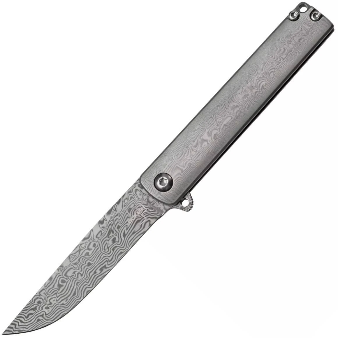 Die Damastklinge aus 110 Lagen Stahl lässt sich mit einem Flipper öffnen und wird durch einen Framelock-Verschluss in der offenen Position gehalten. Der Griff und die Schnalle sowie die Klinge sind aus veredeltem Damast gefertigt und machen das Taschenmesser zu einem echten Schmuckstück. Am Ende des Griffs befindet sich ein Loch für ein Schlüsselband.