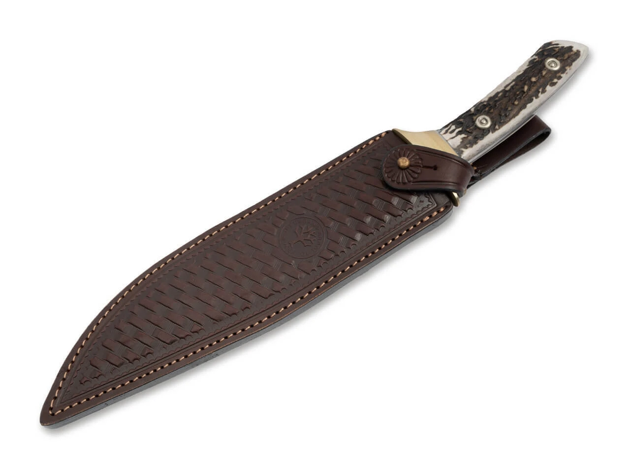 Die solide Klinge mit Vollerl-Konstruktion ist aus langlebigem ACX-390 Stahl gefertigt. Der massive Edelstahlschutz schützt Ihre Hand vor Verletzungen und verhindert, dass Ihre Finger bis zur Klinge abrutschen. Der Griff ist aus echtem Geweih gefertigt.
