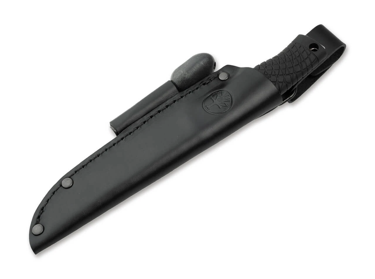 Das Messer wird mit einer hochwertigen Lederscheide geliefert, die das Messer vor Verlust und Beschädigung schützt. Er ist mit einem Stuhl ausgestattet.