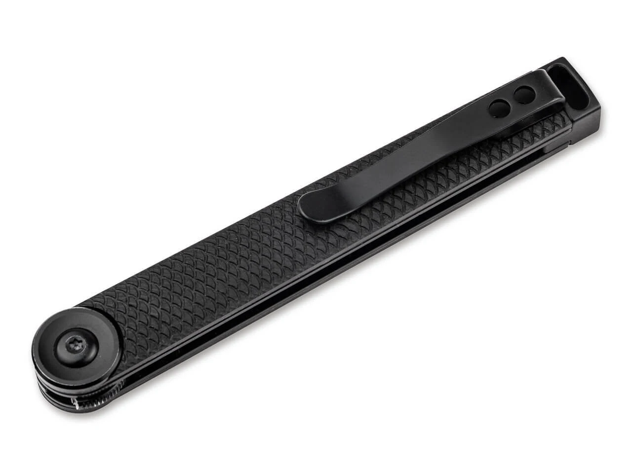 Die Klinge aus hochwertigem CPM S-35VN Stahl öffnet sich mit einem unauffälligen Flipper, der durch eine Linerlock-Sicherung in der offenen Position gehalten wird. Der Griff ist aus strapazierfähigem G10-Material gefertigt. Am Ende des Griffs befindet sich ein Lanyard-Loch. Das Messer ist mit einem Clip zum Tragen in der Tasche ausgestattet.